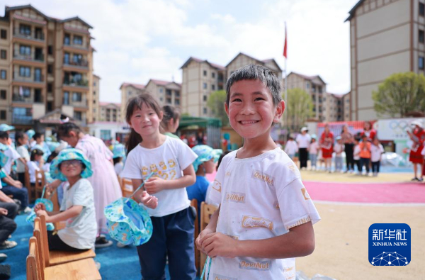 在贵州省单体规模最大的易地扶贫搬迁安置点毕节市七星关区柏杨林街道,七星关区第三幼儿园的孩子们在参加活动(7月13日摄)。新华社记者 刘续 摄
