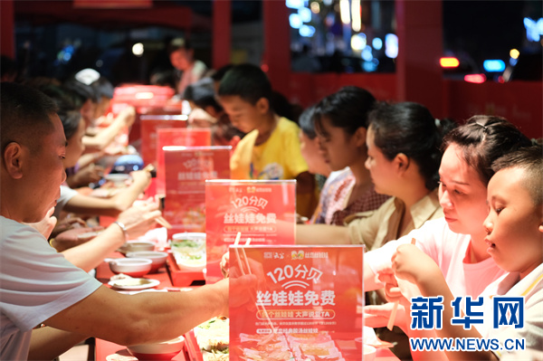 市民参与贵阳丝娃娃节长桌宴。新华网发(班琛奇摄)
