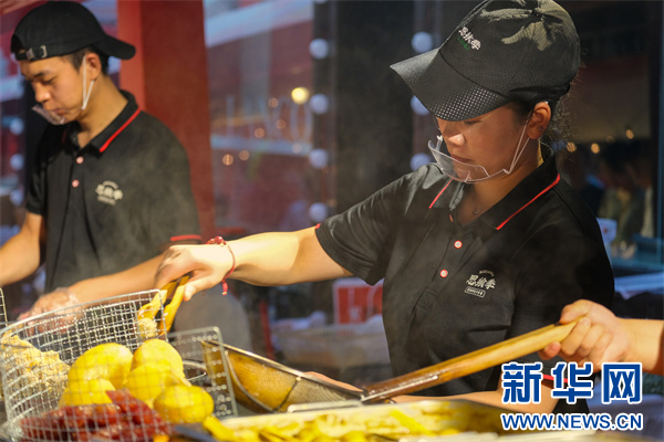 各小吃摊上,摊主忙得火热。新华网发(班琛奇摄)