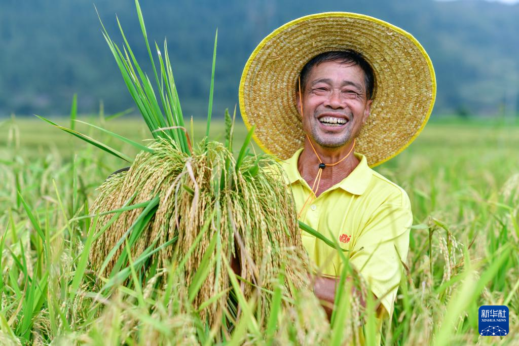 陈良东在杂交水稻制种基地查看稻种成熟情况(8月26日摄)。新华社记者 杨文斌 摄