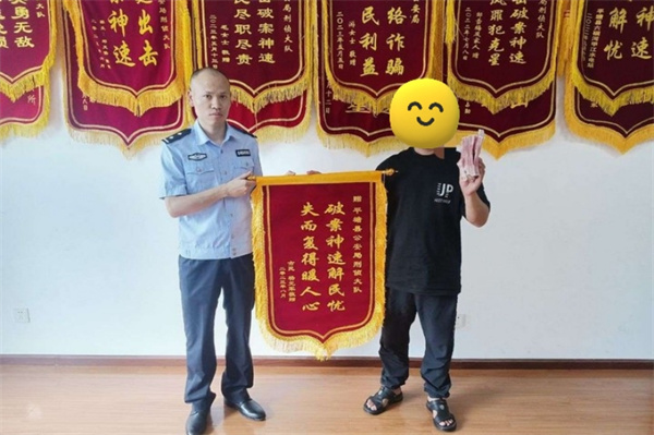 “我被骗的血汗钱追回来了,感谢你们!”8月28日,平塘县通州镇的杨先生将一面写有“破案神速解民忧 失而复得暖人心”的锦旗送到平塘县公安局刑侦大队民警手中,以感谢民警帮其追回被骗钱款114000元。