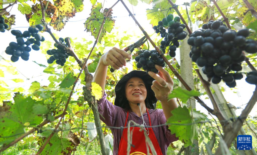 9月5日,村民在贵州省都匀市匀东镇马寨村采摘葡萄。新华社发(肖伟 摄)
