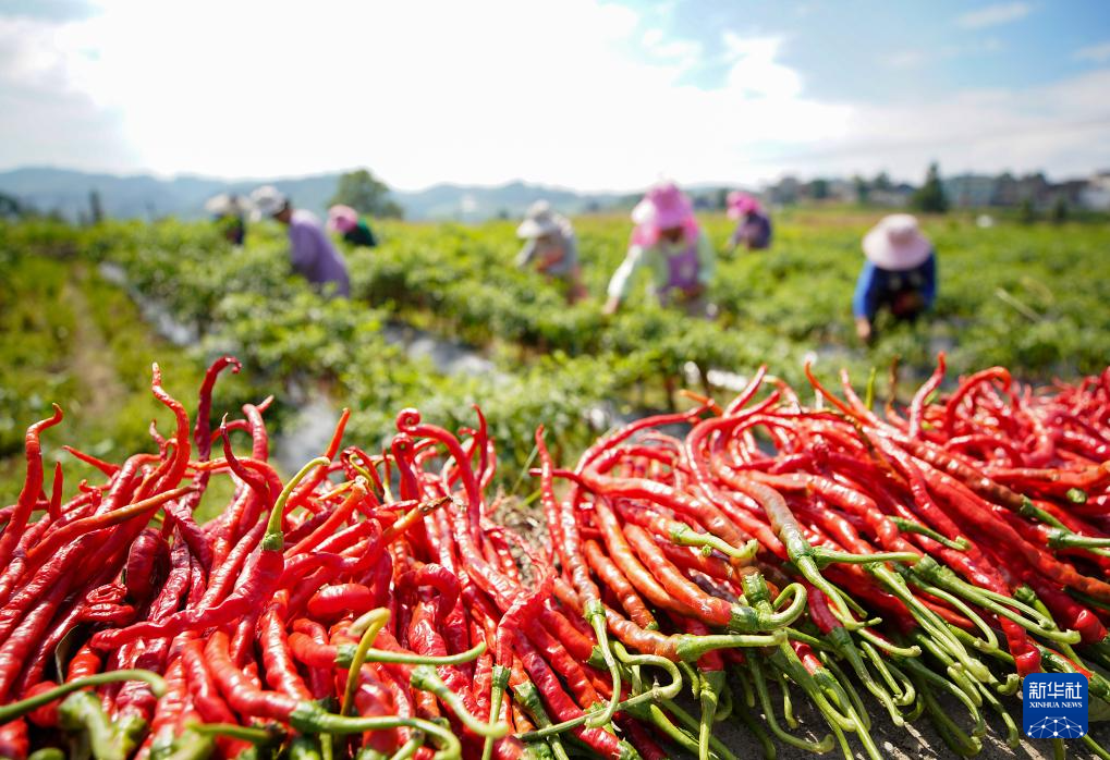 9月5日,贵州省黔东南苗族侗族自治州丹寨县兴仁镇台辰村村民在采收辣椒。