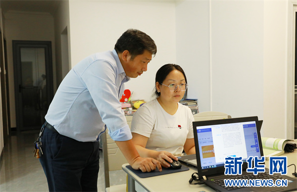 郭振华和妻子彭九侠在备课