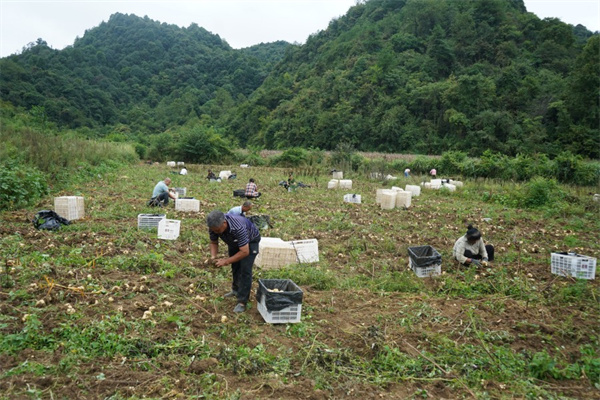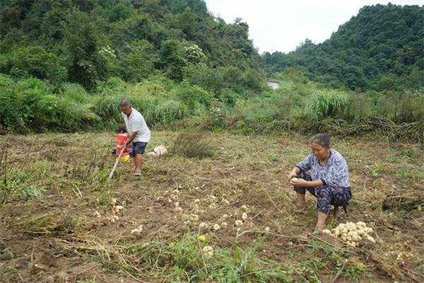 岑巩县凯本镇龙塘河村,村民在采收百合。(沈婷 摄)