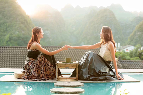 黔西南的很多民宿都是融入自然与布依族元素而建设的,民宿隐于半山腰上,可俯瞰万峰林的田园风光。黔西南的民宿拥有得天独厚的户外资源,在黄昏,与亲朋环坐一起,享受着农家美食,领略着颜色“渐变”的群山。这样治愈系的度假你打几分?
