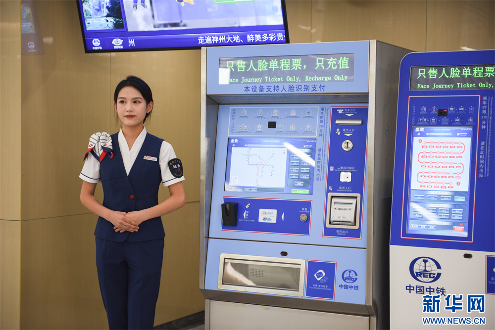 9月28日,工作人员正在介绍三号线自动售票机。新华网发(李丽摄)
