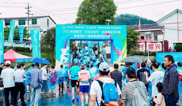 10月5日,2023年贵阳市“农民丰收节”全民健身系列赛暨南明区十里桃园越野跑比赛在永乐乡桃花园内举行,来自全市的576名运动员齐聚一堂,欣赏乡村美景,感受运动乐趣。