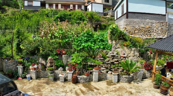 周朋伟打造自家院子的积极性在三友坡是位居前列的。在他家院子里,自己铸模造就的栏杆“圈”出了小小天地、层岩奇石建造出假山鱼池、树桩盆景错落点缀……无不透露着周朋伟对自家庭院改造的奇思妙想。