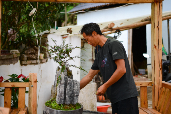 院子环境舒适,周朋伟的母亲王万菊也笑道:“打造这个院子他花了几万元,好些盆盆罐罐、花花草草都是从外面买回来的,之前他去山上找树桩,人晒得黑黢黢的,随着院子环境的改变,看着这些花草人的心情都变好了。”