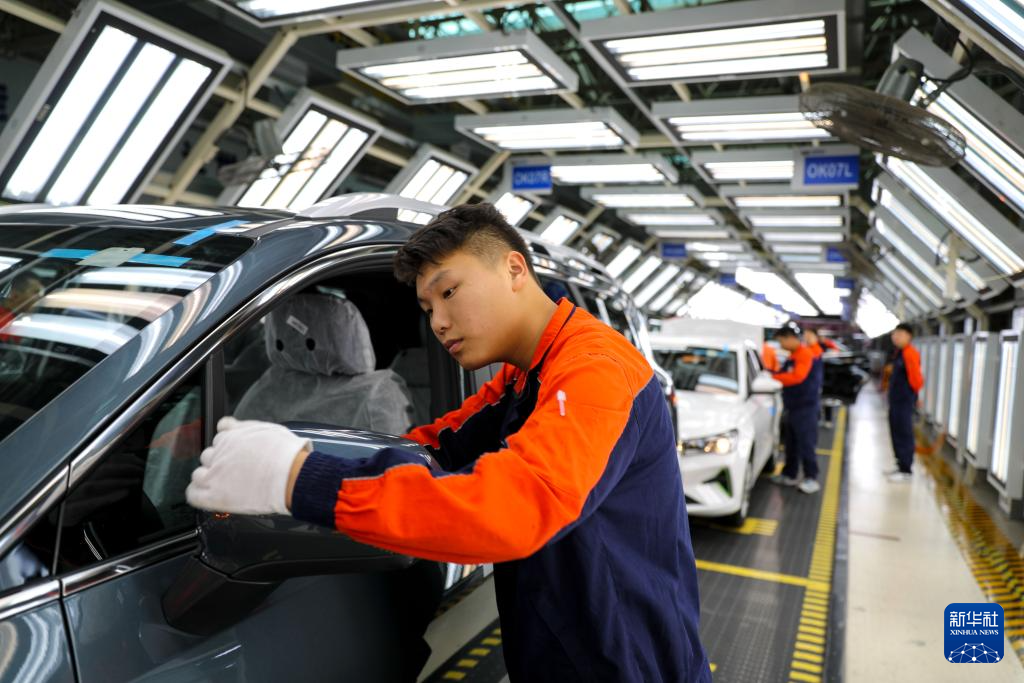 10月7日,工人在贵州省贵阳市观山湖区一家汽车制造企业的车间内工作。