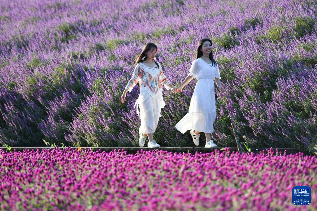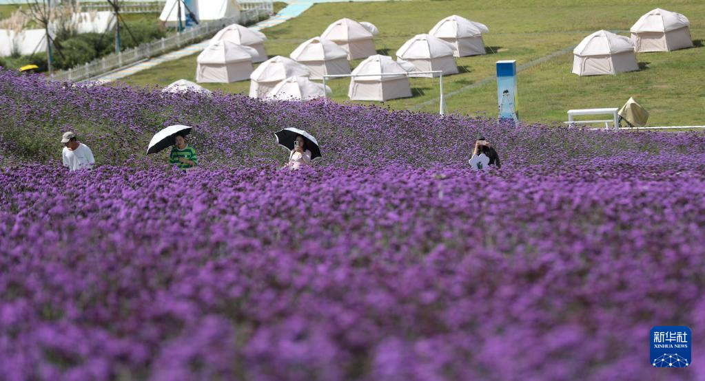 金秋时节,贵州省贵阳市花溪区高坡乡云顶花海景区里的马鞭草迎来盛开期,吸引许多游客前来赏花游玩。