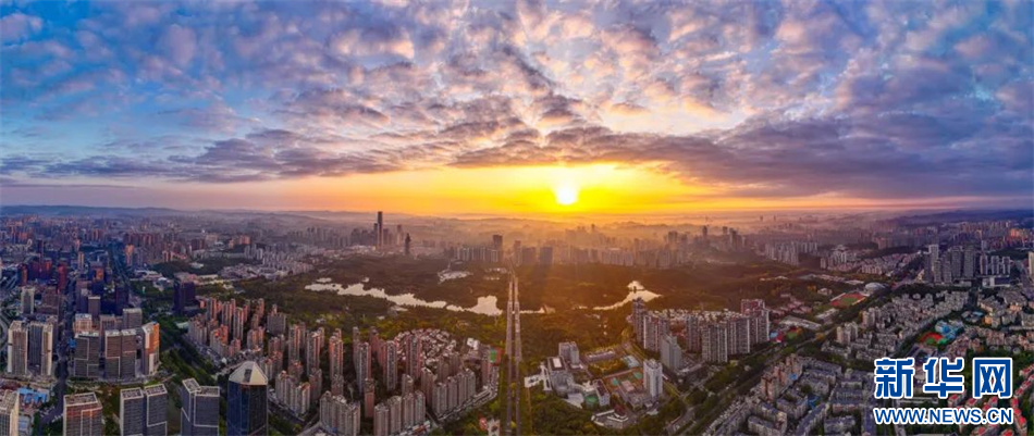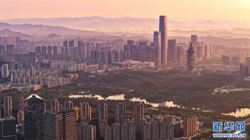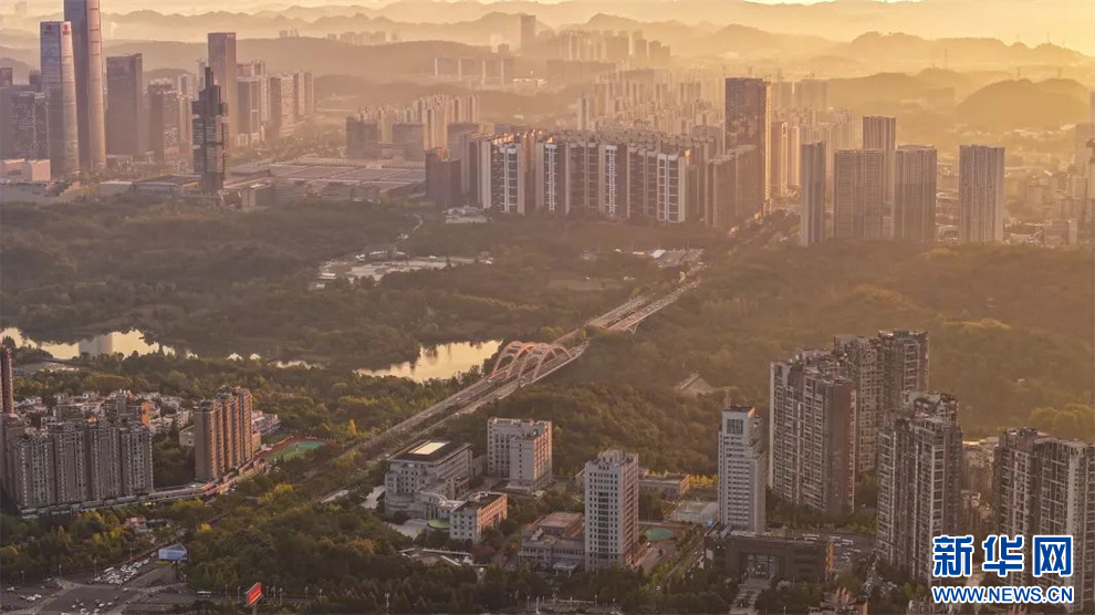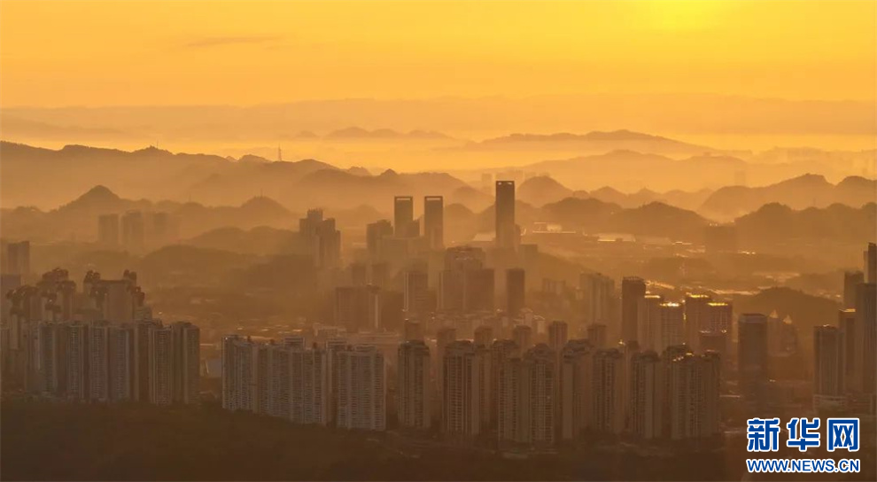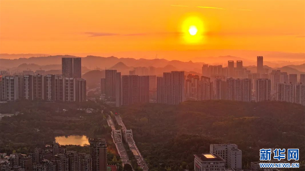 10月18日,航拍晨光中的贵阳。新华网发(吴林燚 摄)