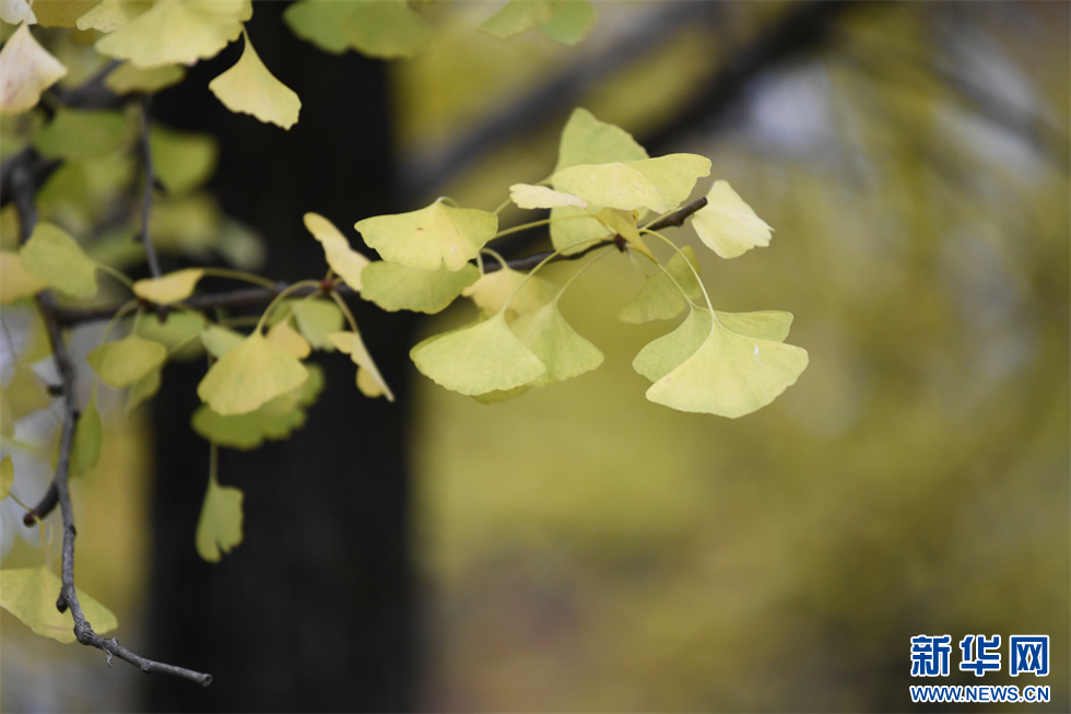 筑城广场的银杏树叶逐渐变黄(11月7日摄)。新华网发(赵松 摄)