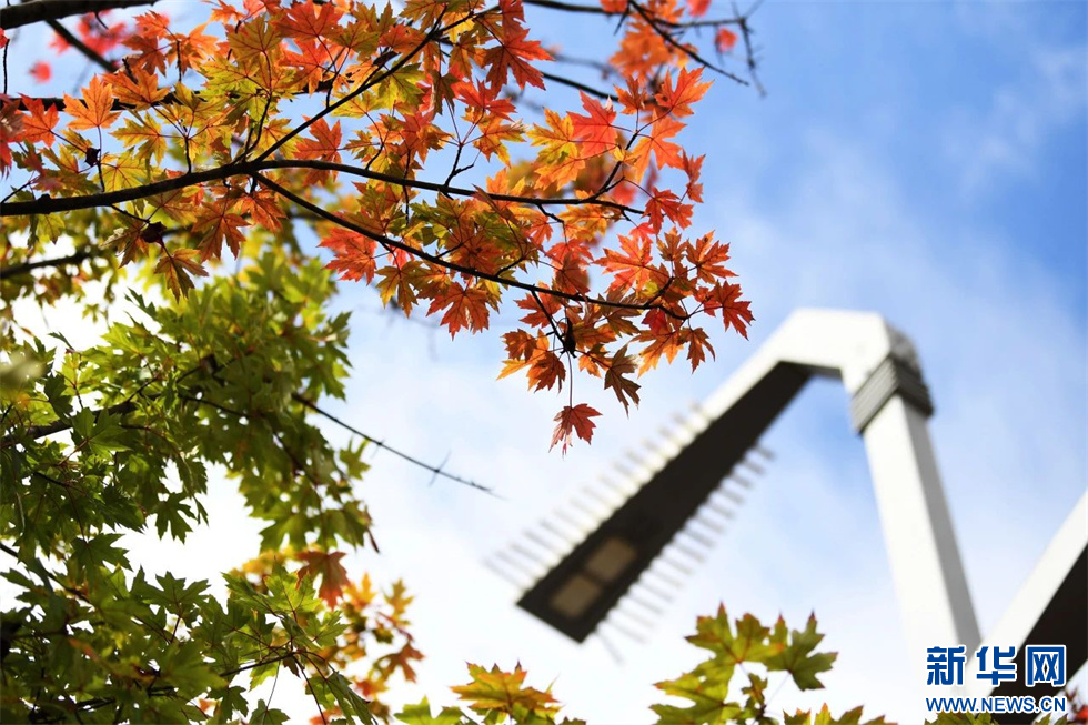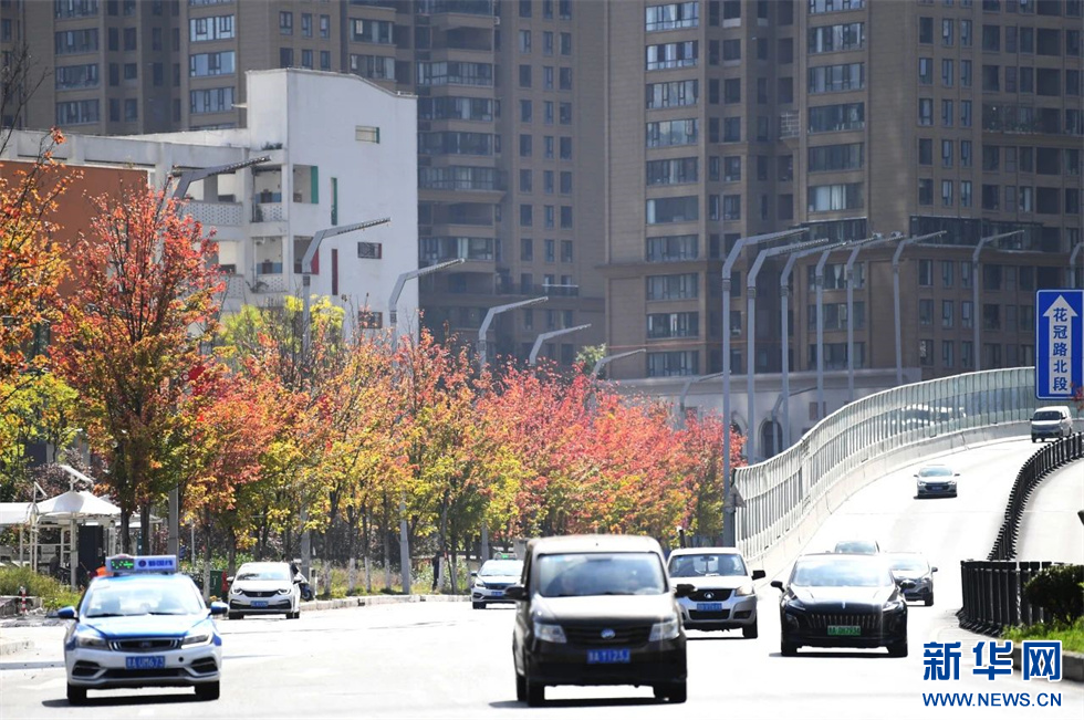 贵阳市花冠路上的枫叶逐渐变红(11月7日摄)。新华网发(赵松 摄)