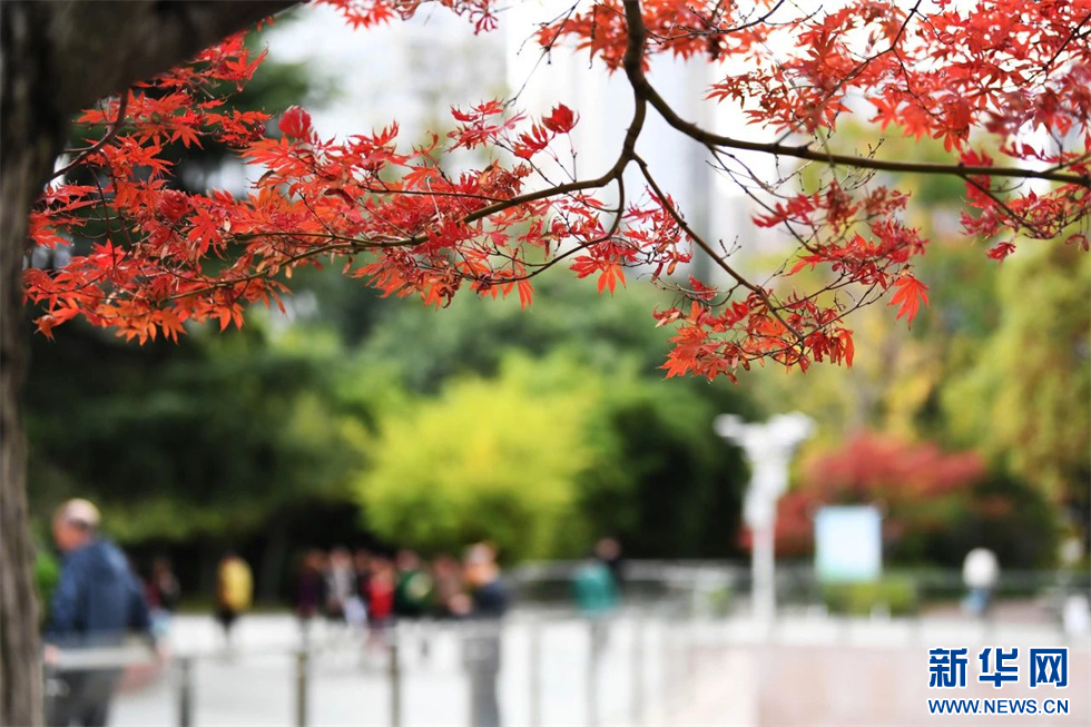 秋冬时节,在贵州省贵阳市筑城广场、南明河沿岸、花冠路上,红的枫叶、黄的银杏,色彩斑斓,缤纷夺目,呈现出如诗如画的景致。