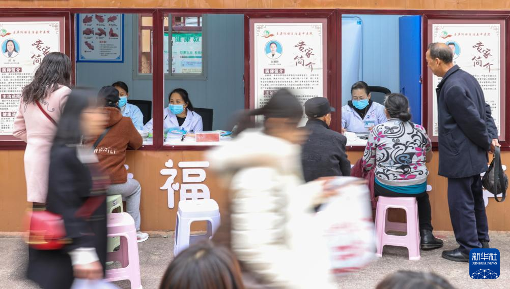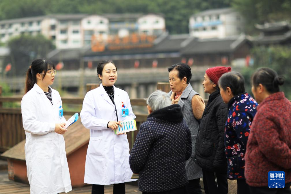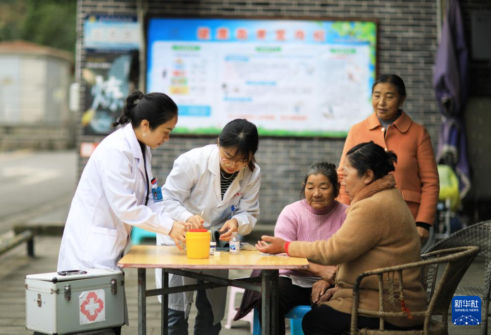 11月14日,在贵州省赤水市丙安镇,卫生院的医务人员为群众测血糖。新华社发(王长育 摄)
