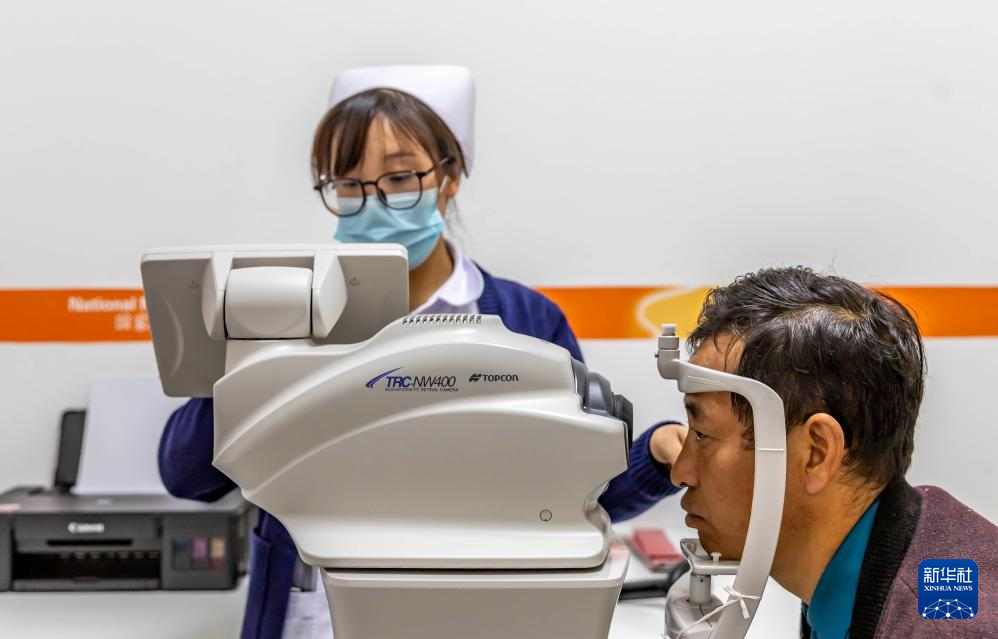 11月14日,护士在贵州省黔西市人民医院东桥路院区住院部为患者排查糖尿病视网膜并发症。新华社发(范晖 摄)