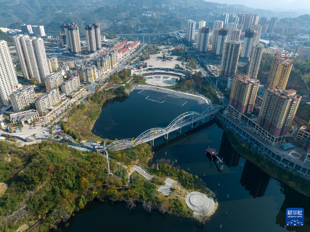 11月29日拍摄的贵州省遵义市正安县湿地公园与民居一景(无人机照片)。新华社记者 杨楹 摄pagebreak