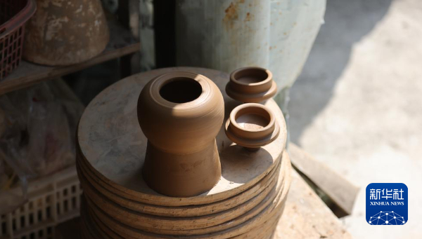 发间略有银白的钟成贵,头随着机器节奏轻轻晃动,拉制动作娴熟而又严谨,“拉胚非常重要,在这一阶段就要把陶泥塑型成圆润饱满状,后期烧制时才不会开裂受损。”钟成贵说。