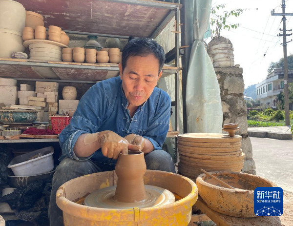 11月2日,钟成贵在制作陶器。 新华社记者周宣妮摄