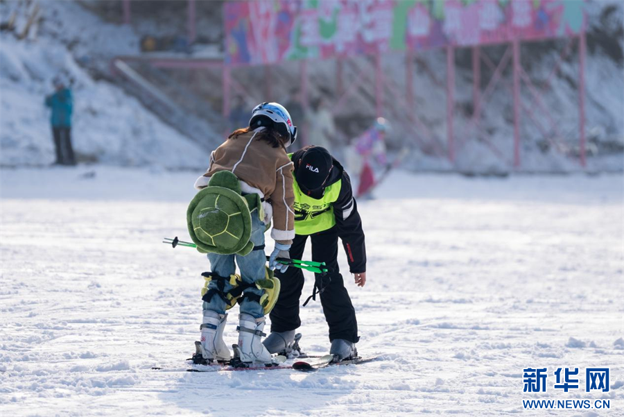 12月26日,玉舍雪山滑雪场教练现场教学中。新华网发(李儒鑫 摄)