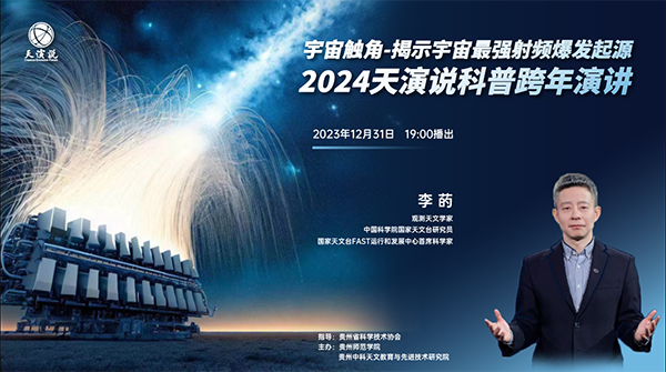为推动贵州科技与文化深度融合,服务贵州天文科技创新高地建设,赋能贵州经济社会高质量发展。12月31日晚7点,由贵州省科学技术协会指导,贵州师范学院、贵州中科天文教育与先进技术研究院联合主办的“2024天演说科普跨年演讲”将在贵阳正式开讲。