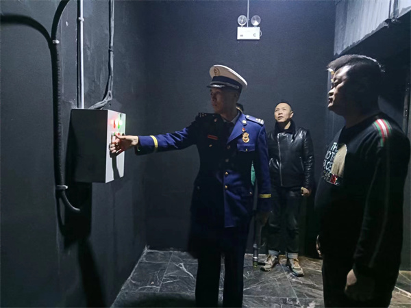 大队执法监督员对重点场所消防设施进行检查指导