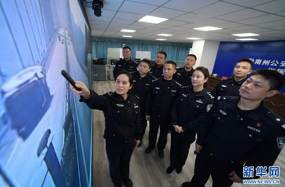 1月10日,交通民警在贵州省黔南布依族苗族自治州公安交通管理局指挥中心会商辖区交通状况。新华社记者 杨楹 摄