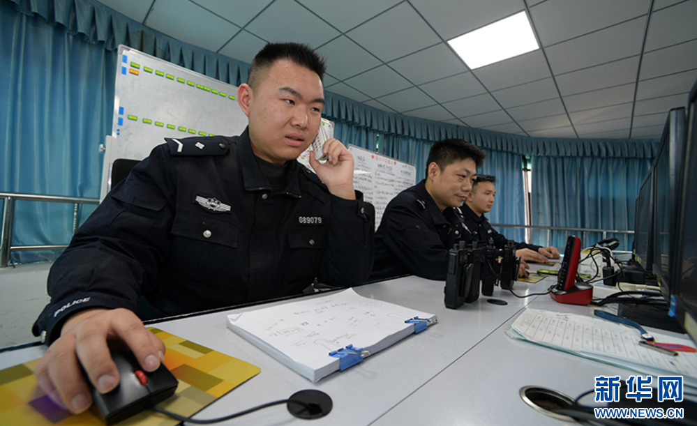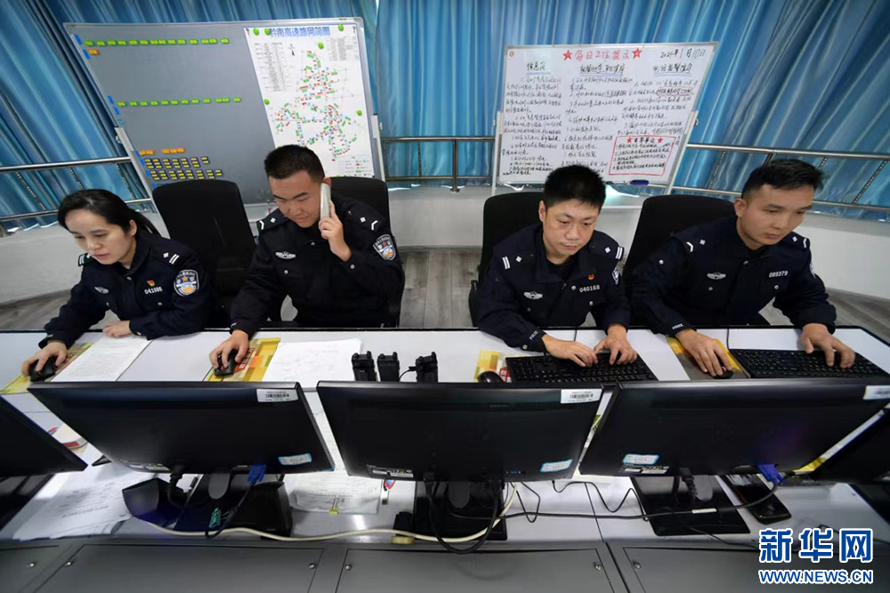 1月10日,交通民警在贵州省黔南布依族苗族自治州公安交通管理局指挥中心值守。新华社记者 杨楹 摄