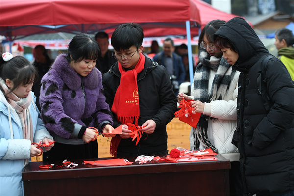 2月2日,凯里市2024年送春联、拍全家福活动走进凯里苗侗风情园,吴玉萍老师与学生们一起剪纸,以刀剪匠心迎接新年,传承非遗文化,增添浓浓的年味。