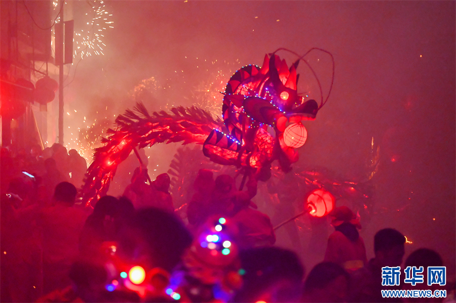 2月19日,贵州省毕节市百里杜鹃管理区百纳乡舞龙巡游表演。新华网发(李华 摄)
