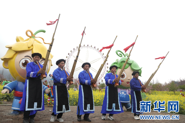 当地群众吹奏芦笙。新华网 周远钢 摄