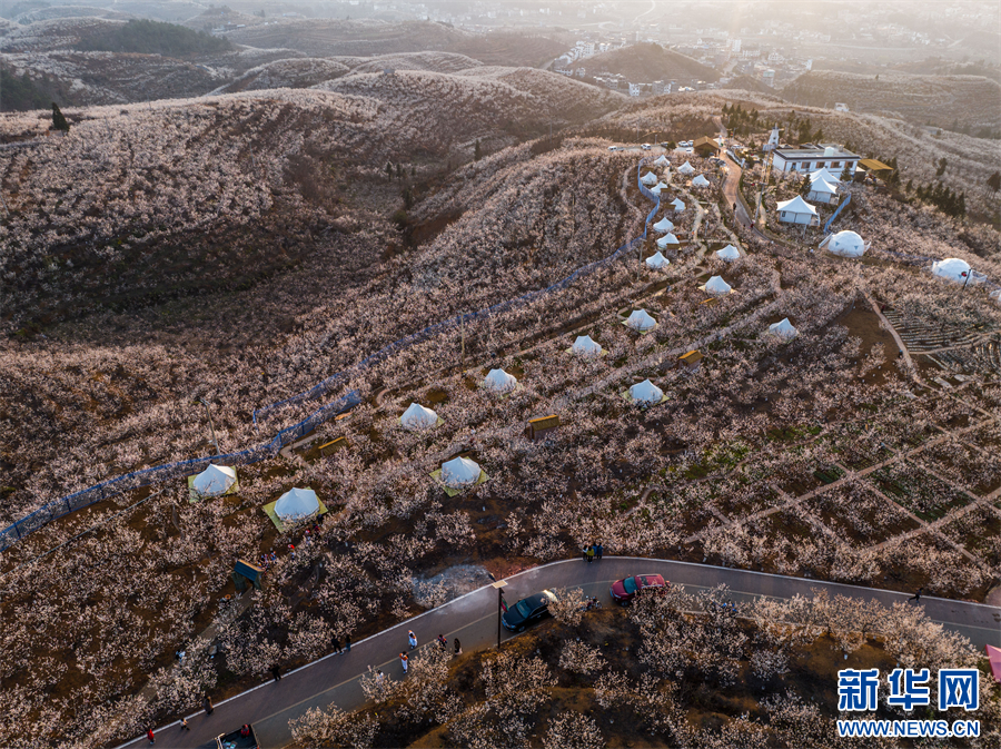 连日来,随着气温回升,位于贵州省毕节市纳雍县厍东关乡陶营村的3万余亩樱桃花如约绽放,漫山遍野一片雪白,游客纷纷前往踏春赏花,享受春日美好时光。近年来,厍东关乡依托樱桃产业,形成了赏花、采果、樱桃加工、文化推介为一体的农文旅融合发展格局。樱桃产业成为村民持续增收的主要产业之一,带动当地群众走上绿色发展和生态旅游道路。