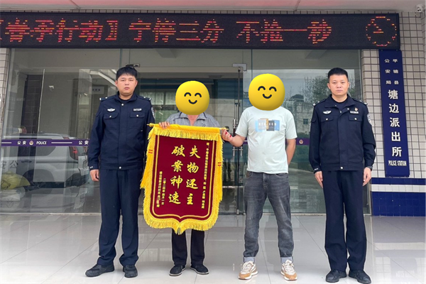 4月1日,平塘县塘边镇群众周某某将一面锦旗送到平塘县公安局塘边派出所,对民警帮助找回丢失现金和认真负责表示感谢。