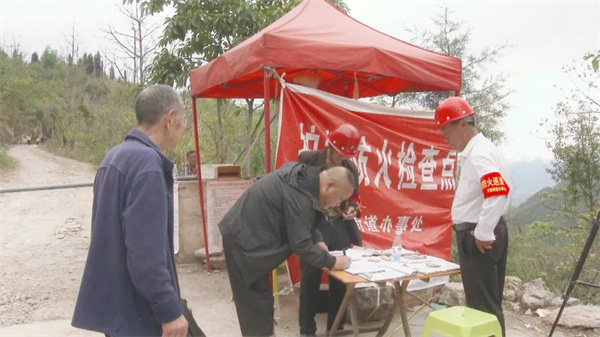 在关索街道场坝村护林防火卡点,卡点工作人员对进入山区的车辆和人员进行严格检查,严禁携带烟花爆竹、火种等进入山区,劝导群众文明祭祀,摒弃陈规陋习。