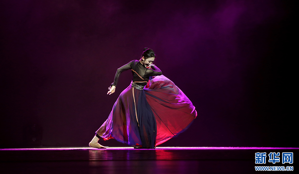 4月8日,委培班毕业生进行苗族女子独舞展示。新华网 卢志佳 摄
