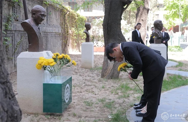 启动仪式结束后,两校领导与2020级“协和班”全体同学步入西庭仰径,共同瞻仰了两校共同的校长——李宗恩先生的雕像,并向其敬献鲜花,以表追思。
