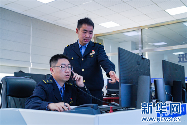 图为动车组调度员在指挥生产。新华网发(杨杰文摄)
