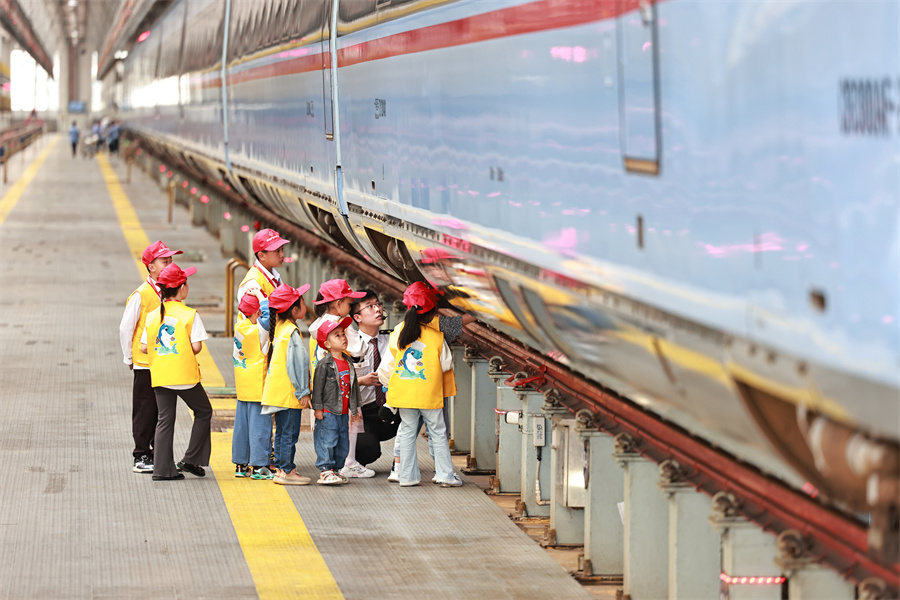 5月31日,成都局集团贵阳车辆段、贵阳机务段、贵阳客运段联合举办“科技体验 别样六一”活动,邀请了20余名4至10岁的职工子女以“探班”的形式,在动车所近距离接触“复兴号”高铁,了解体验中国高铁科技,度过一个别样的六一儿童节。