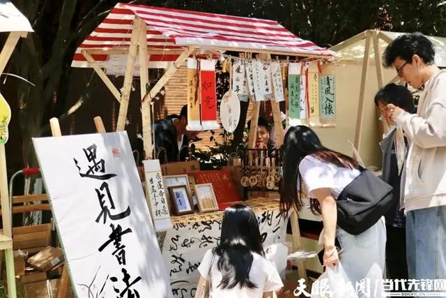 书法字画、手工艺品、艺术潮玩、应季鲜花应有尽有,创意无限;“市集+直播+电商”模式将传统市集与现代科技相结合……同学们富有想象力的作品,创新的销售形式吸引了众多师生驻足观看、体验购买。