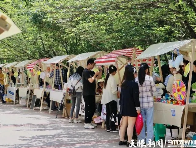 “各位老师同学们来看一看,这都是我们大学生自己原创的。”近日,在贵阳学院校园内,一个弥漫着青春与创新气息的市集热闹非凡,吸引着众多师生前来打卡体验。