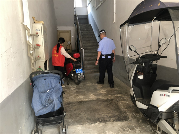 㵲水街道天水坪组织网格力量开展楼道清理行动。(向鹏 摄)