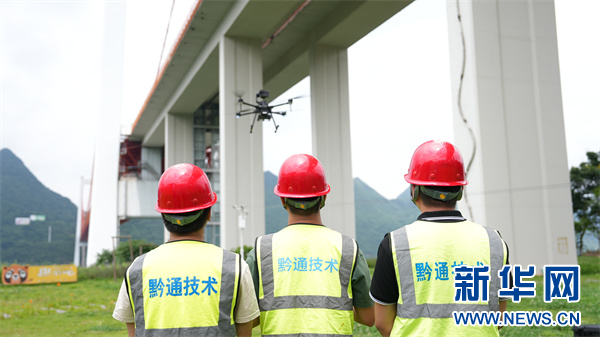 7月12日,技术人员对坝陵河大桥进行无人机定检。新华网 周远钢 摄