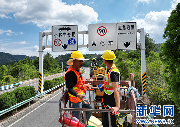 图为更换限速标志。新华网发