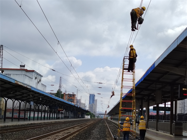 图为作业人员更换接触线。董友平 摄