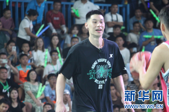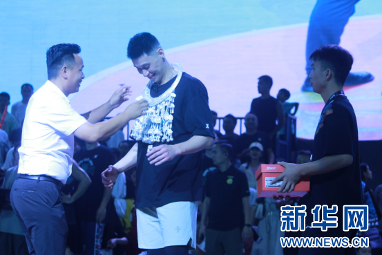 林书豪为选手们带来了礼物。新华网发(陈纪滔 摄)