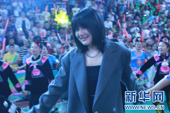 王贰浪与台盘人民蹦苗迪。新华网发(陈纪滔 摄)