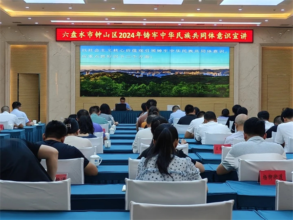8月22日,六盘水市钟山区民宗局组织开展2024年“铸牢中华民族共同体意识”宣讲进机关活动,邀请六盘水市铸牢中华民族共同体意识宣讲团宣讲员王华作宣讲,教育引导各族干部铸牢中华民族共同体意识,坚决守好民族团结生命线。区直各部门、各镇(乡、街道)有关负责人69人参加活动。