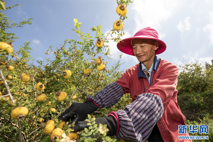 毕节市大方县鼎新乡村民在采收刺梨。新华网发(何志刚 摄)